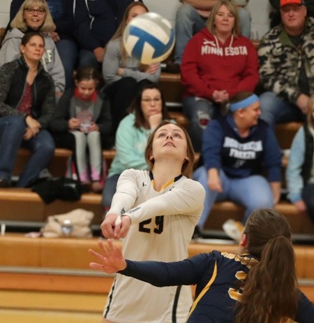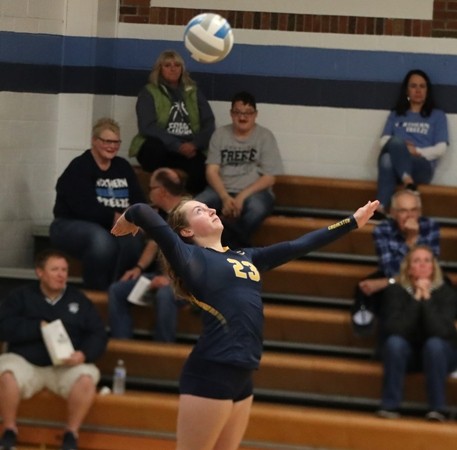 The Northern Freeze (co-op of Tri-County of Karlstad and Marshall County Central of Newfolden) used outstanding serving and some big kills from 6’1 senior Keylee Dahl to beat the Crookston Pirate Volleyball team 3-0 (25-17, 25-17, 25-16) in the first round of the Section 8A Volleyball tournament played in Karlstad.