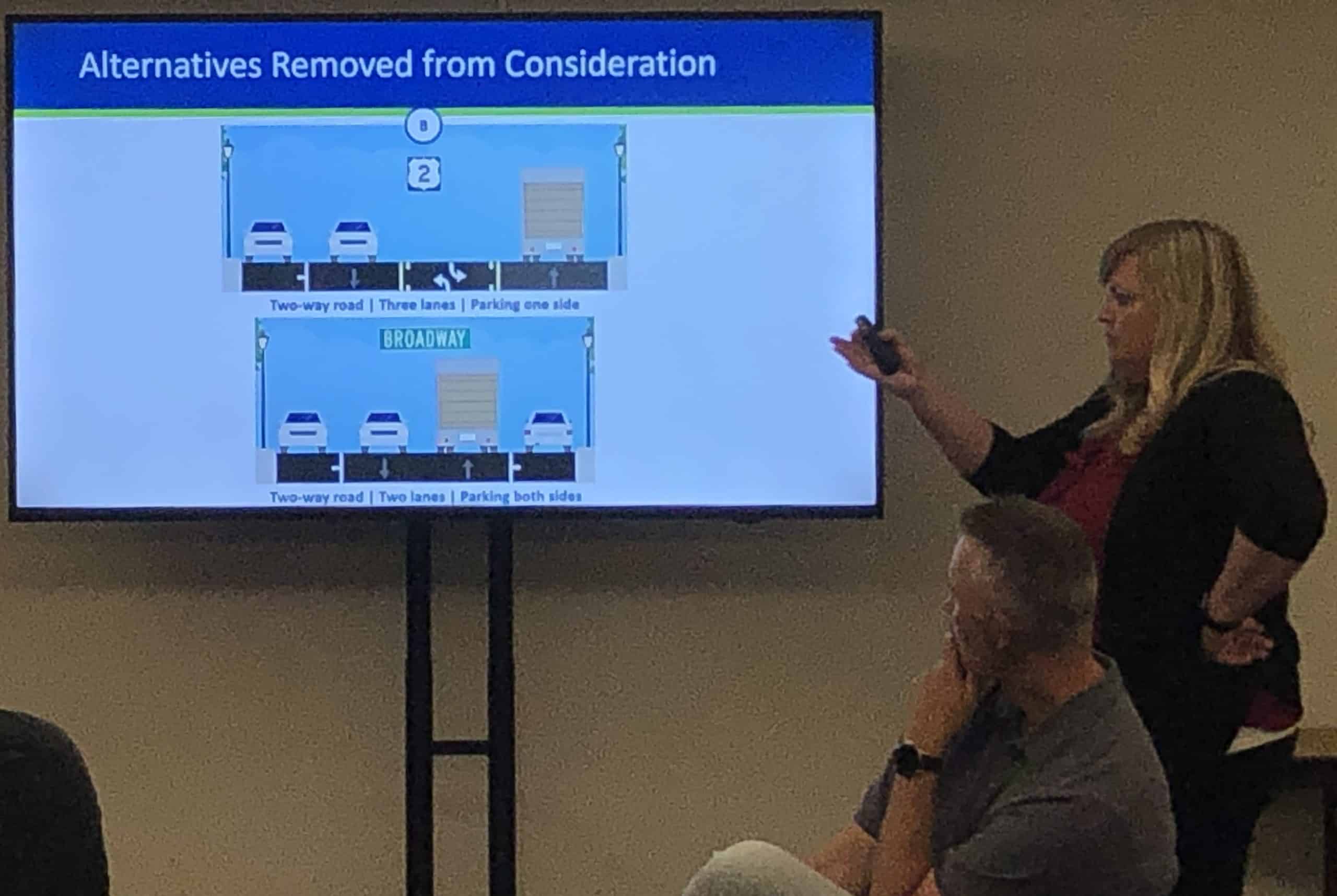 The committee first saw a presentation on the Corridor from SRF Consulting Project Manager Molly Stewart. She opened with a background of the study, saying the city is partnering with the Minnesota Department of Transportation (MnDOT) to produce a locally-led study evaluating the transportation and pedestrian needs of Highway 2 in Crookston and found that there were vehicle and pedestrian safety concerns. As less than 50% of the sidewalk and curb ramps meet accessibility standards, there were no roadway capacity issues and high truck traffic, and the downtown bypass route is underutilized by freight traffic. She then presented that they completed two open houses, one in the fall and one in the spring. Where they learned that road crossing safety in downtown Crookston and maintaining on-street parking were among the most significant issues identified in the city, that the public strongly supported the alternative to narrow the roadways to just two lanes, and that they desire to reduce regional truck traffic with designated bypass routes and bike paths. They had also conducted four community review panels with local leaders, key stakeholders, and business owners, where they learned and identified seven community priorities and reviewed roadway alternatives and options for broader community feedback.