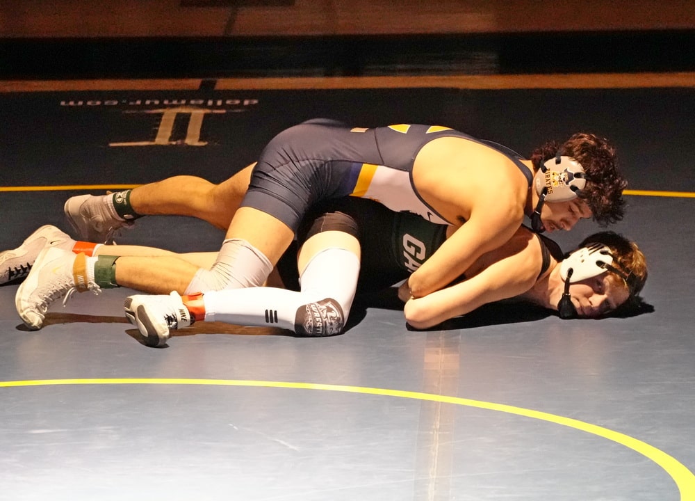 Crookston was open at 107 pounds, so BGMR took a 6-0 lead. At 114 pounds, Mauricio Arriaga got a takedown for a 3-0 lead before giving up an escape and took a 3-1 lead into the second period. In the second period, Arriga scored four near-fall points with 40 seconds left in the period to take a 7-1 lead.  He added three more points with a takedown for a 10-1 lead, which he took into the third period. 30 seconds into the final period, Arriaga got four more near-fall points to take a 14-1 lead and held on for a 14-2 major decision victory.