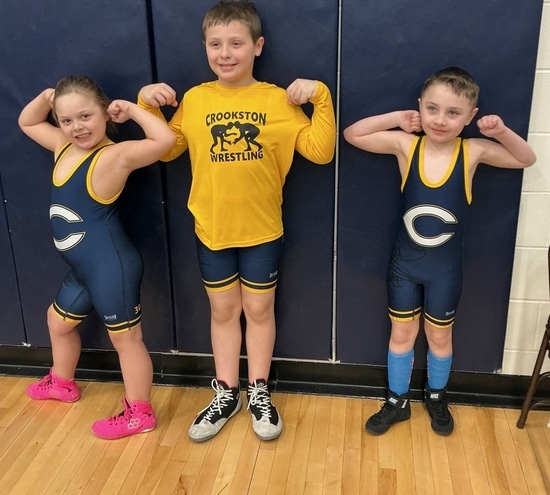 Three Crookston Youth Wrestlers traveled to Bemidji on Sunday for another tournament and all came home champions. Kayla Olson, AJ Samuelson, and Henry Stanislowski.