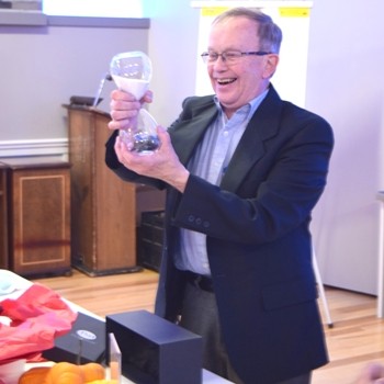 President Anne Muir presented Morlan with a personalized hourglass for reaching the significant milestone of 20 years as treasurer. Despite stepping down as treasurer Morlan will continue to remain a member of the PCHS society board as he was re-elected to a three-year term.