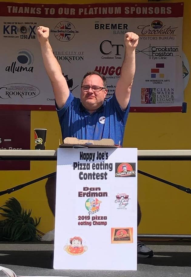 A familiar name won the Happy Joes Pizza and Ice Cream Parlor pizza eating contest as reigning champion Dan Erdman defended his crown by winning the 2021 contest on Saturday afternoon at the Downtown Square in Crookston.