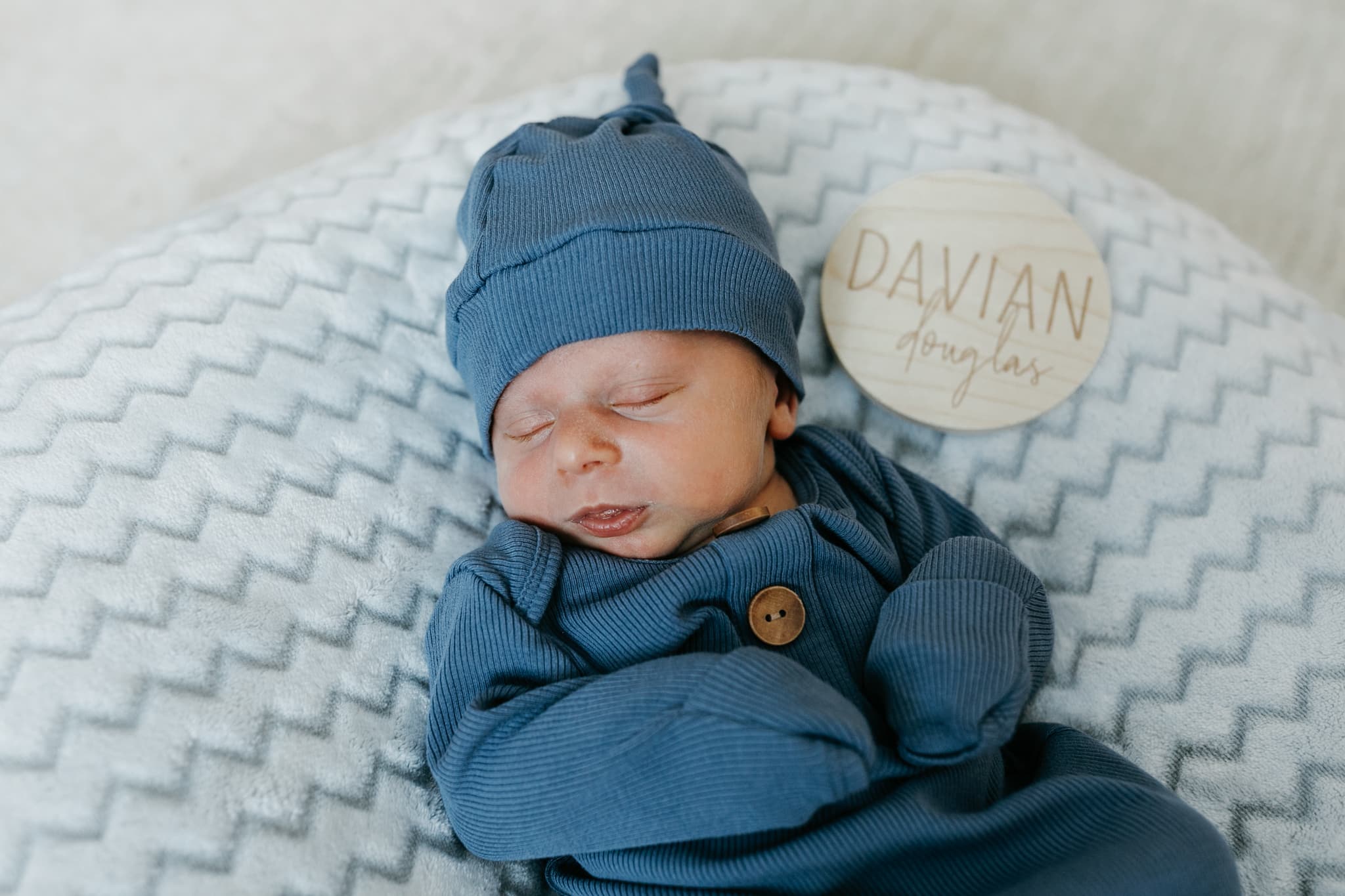 Davian wasn’t waiting for his January 12 due date; he arrived at 11:25 a.m. on the first Monday of the month, weighing seven pounds five ounces and measuring 19.5 inches long.