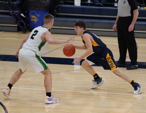 East Grand Forks started the second half on a 16-1 run while turning Pirate turnovers into easy points and had a 52-25 lead four minutes into the half. Â The lone Pirate point in the run came on a Ryan Abeld free throw. Â The total run for East Grand Forks from the end of the first half to the start of the second half was a 26-3 run.