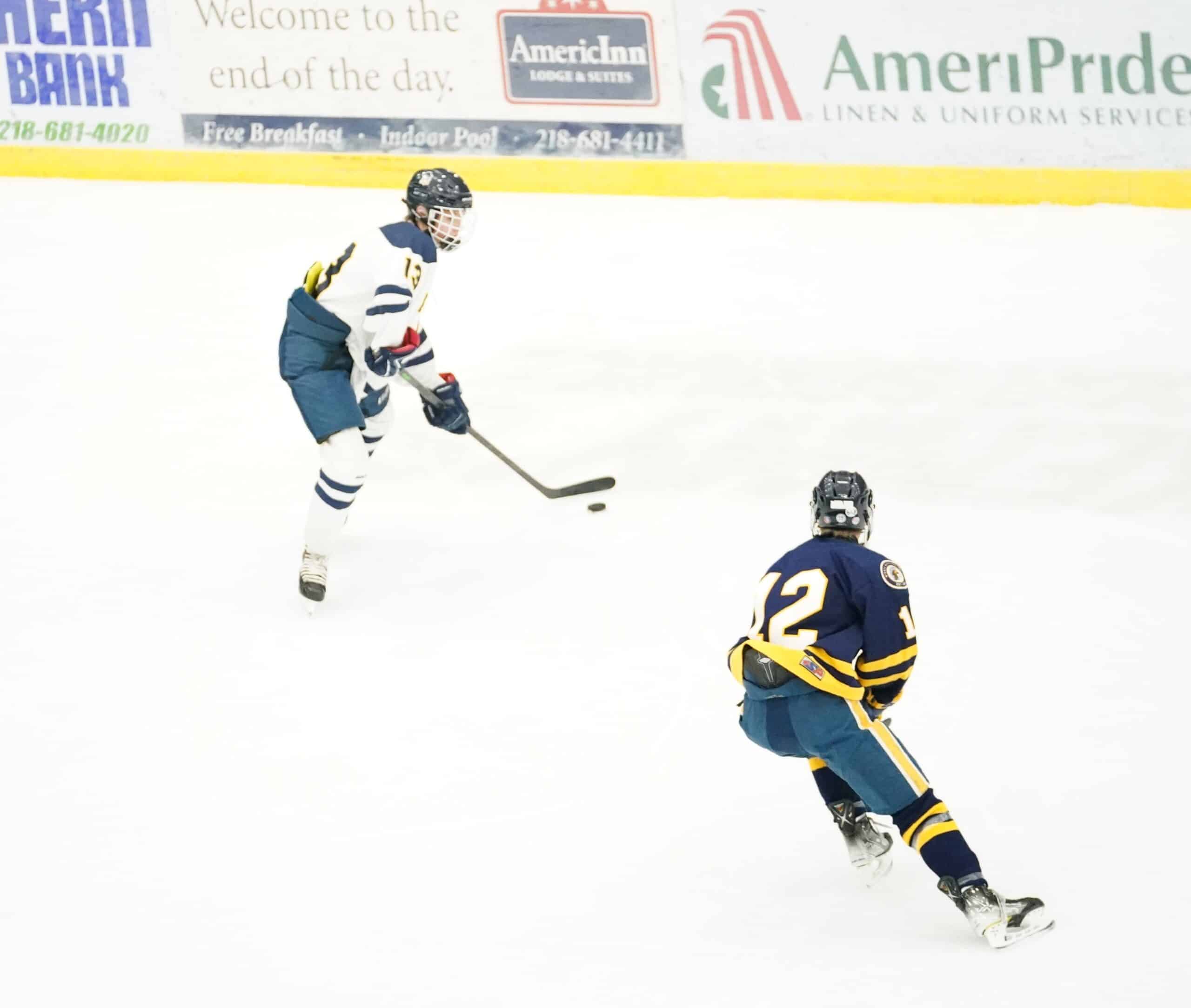 The Pirates were able to skate their way back to even strength, as they killed the remaining 53 seconds on the Spartans Power Play that carried over into the second period. There were two goals scored in the second period, both by the Spartans. Samuel Fritel made it 3-0 Fargo North at the 8:50 mark, and Owen Branson added another one at the 13:21 mark making it 4-0 Spartans. “We need to be tougher in our defensive zone,” said Pirates Head Coach Josh Hardy. “We got some young kids, we’re not a huge team but we have to find ways to be a bit more physical in our own zone.” Crookston would get a few looks at the Fargo North net but would be turned away, and the Spartans would take a 4-0 lead into the second intermission. Fargo North outshot the Pirates 28-5 through the first two periods and used strong defense to control the puck most of the night.