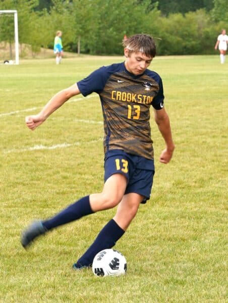 For the second straight game, Crookston had a tough start and their opponent made them pay. Fergus Falls Hillcrest controlled play early on and scored six minutes into the game to take a quick 1-0 lead from a Emil Bol shot that would beat Pirate goaltender Blake Melsa. Less than 10 minutes later, Hillcrest added two goals over two minutes apart from Abram Ness and Nathan Aanes as it started to rain and all of a sudden they led 3-0 halfway through the half. Crookston would gain some momentum, pressuring Hillcrest late in the first half. “We settled in a little bit and we had an open look from Carter Trudeau, but unfortunately we couldn’t get past their goalie,” said Pirate Coach Lon Boike. There wasn’t any scored for the next 20 minutes and it looked like the score was going to be 3-0 going into halftime, but with 70 seconds left, Hillcrest transitioned with a through ball that beat the Pirate defenders. It sprung Abram Ness who dribbled past Melsa who came out to defend, and put a soft shot on goal. Crookston was almost able to get back to stop it from crossing the goal line, but they were just too late, and the Comets take a 4-0 lead into halftime.