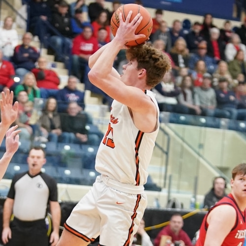 Fertile-Beltrami started the game strong as they scored on their first two possessions with baskets from Derek Sorenson and Preston Hanson. Warren-Alvarado-Oslo (WAO) got on the board with a pair of Kaden Pierce free throws before Fertile-Beltrami answered with a Sorenson basket for a 6-2 lead. WAO bounced back with an Adam McIntyre free throw and a Dustin Moehrle basket to cut the deficit to 6-5. The Falcons built a 12-7 lead before WAO responded with back-to-back three-pointers from Reed Hanson and McIntyre to take a 13-12 lead with 11:35 to go. Fertile-Beltrami senior guard Derek Sorenson responded with four points for a 16-13 lead. The Falcons took a 21-16 lead before a big three-point play by the Ponies’ McIntyre. The teams were tied at 23 and 25 before WAO took a 27-25 lead with a Kylen Kortba basket before Fertile-Beltrami answered with an Easton Petry three-pointer and four points from Mason Nowacki for a 32-27 lead with 4:07 remaining in the half. WAO answered with a 5-1 run with all five points scored by Kotrba to get within a 33-32 deficit. Fertile-Beltrami controlled the final two minutes of the half and went on a 7-0 run behind three Petry points, and two points apiece from Sorenson and Swenby for a 40-32 lead going into halftime.