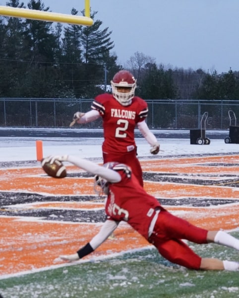 Ogilvie looked to get out of their endzone to keep their season alive, but the Lions fumbled again inside their five and the Falcons recovered again to give them the ball with less than two minutes to play.