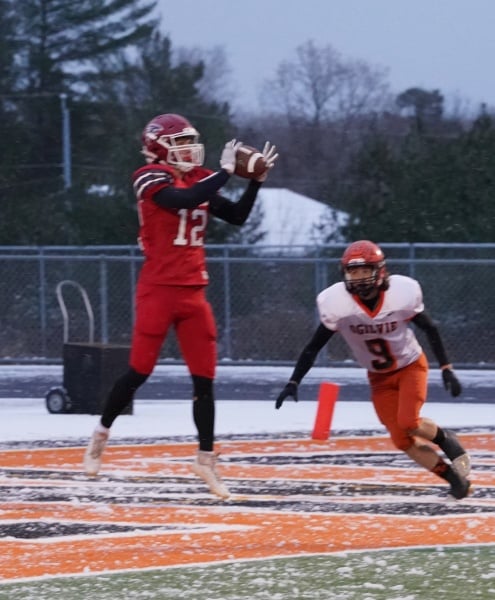 Ogilvie began their first drive of the half at their own 30 as well and Hunter Kenyon found a whole to sprint 22-yards to get into the Falcons’ territory, which was further compounded by an unnecessary roughness penalty on Fertile Beltrami to move to the Falcons 30. Kenyon continued to attack the Fertile-Beltrami defense with his explosive runs to get inside the Red Zone. Kenyon would not be denied finding the end zone after a three-yard run to get the Lions on the board. Ogilvie looked for Kenyon again on the two-point conversion, but they would be turned away by the Falcons keeping Fertile-Beltrami in front 16-6 with 6:10 to play in the 3rd quarter.