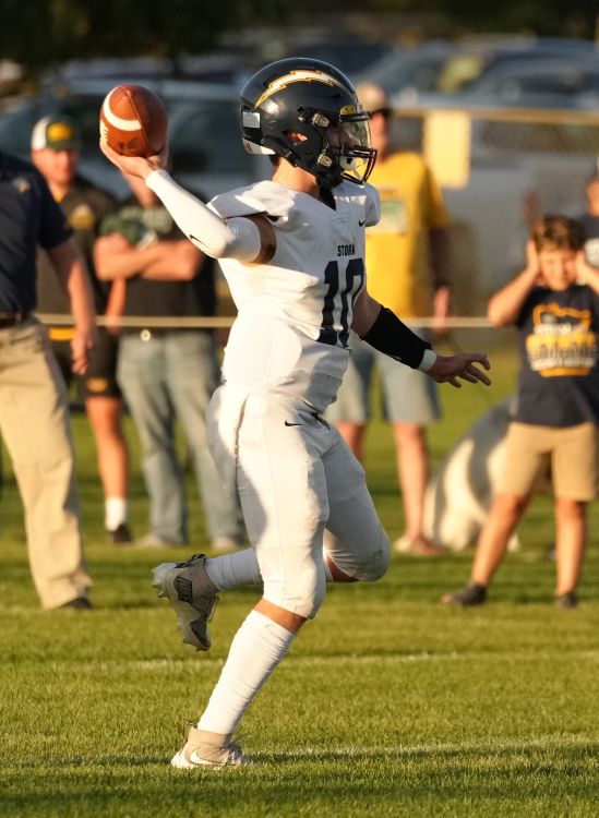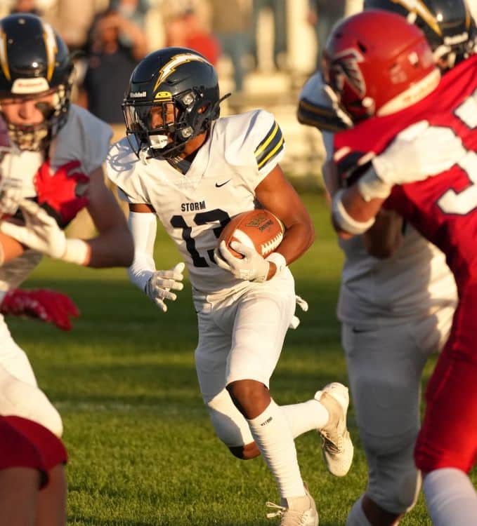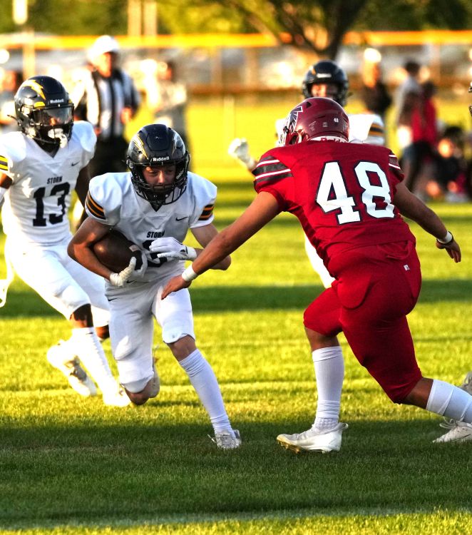 The Stephen-Argyle Storm ran for 312 yards and get a 100-yard interception return for a touchdown to beat the defending state champion Fertile-Beltrami Falcons in the season opener played in Fertile.