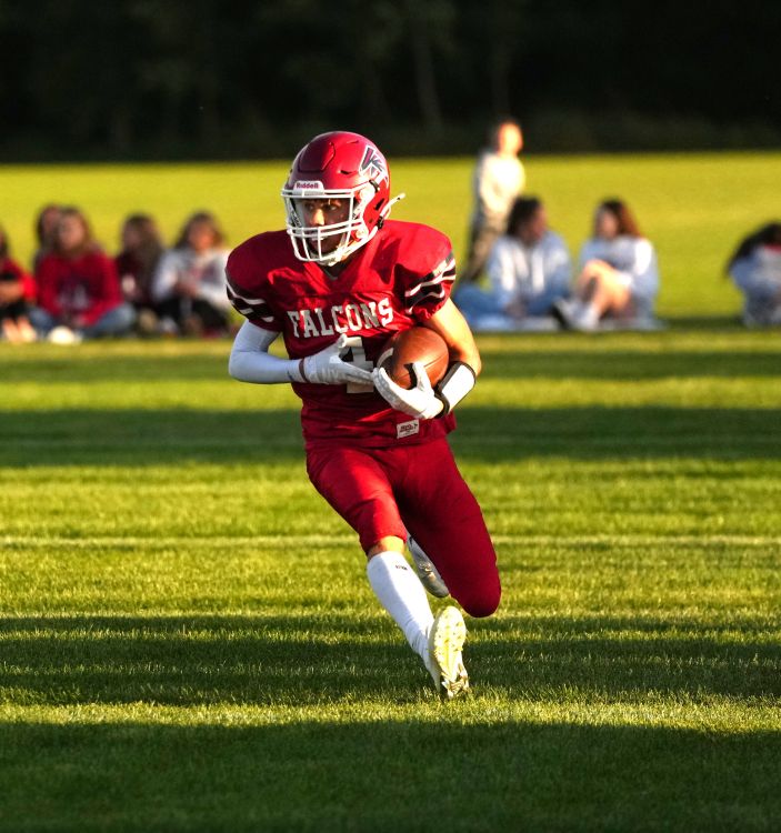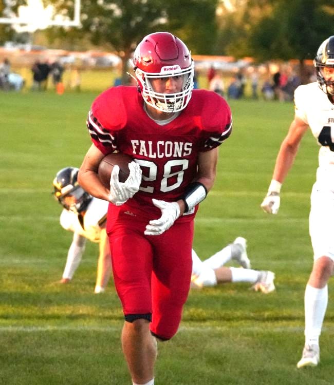 Fertile-Beltrami bounced back with a three-yard carry a 12-yard pass to Strem for his 94 yard receiving in the half. Aakhus found Gullickson for an 18-yard pass and another first down and after two carries for six yards, Aakhus scored on a one-yard quarterback keeper. Strem converted the two-point conversion to get the Falcons within a 28-16 deficit going into halftime.