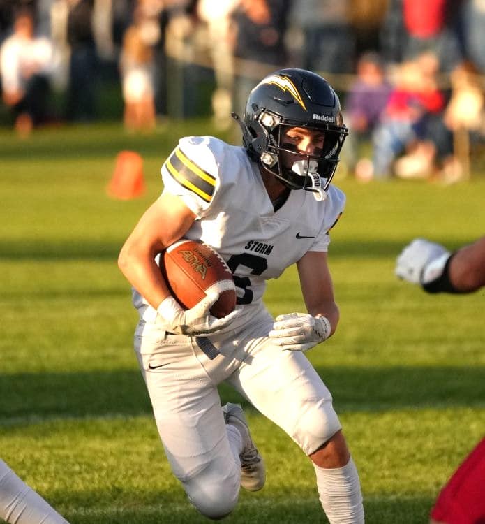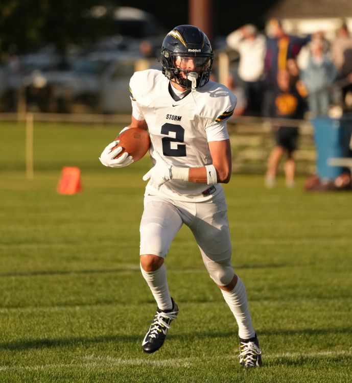 Fertile-Beltrami tried to answer and carried the ball twice for a total of six yards before and incomplete pass and they were forced to punt. Preston Hanson had a nice 37-yard punt down to the 20 yard line. Stephen-Argyle started their second drive of the game at their own 20-yard line, but that didn’t matter as Woinarowicz broke a tackle and found an opening and took off down the sideline for an 80-yard touchdown run. The two point conversion failed and the Storm led 14-0 with 5:38 to go in the opening quarter.