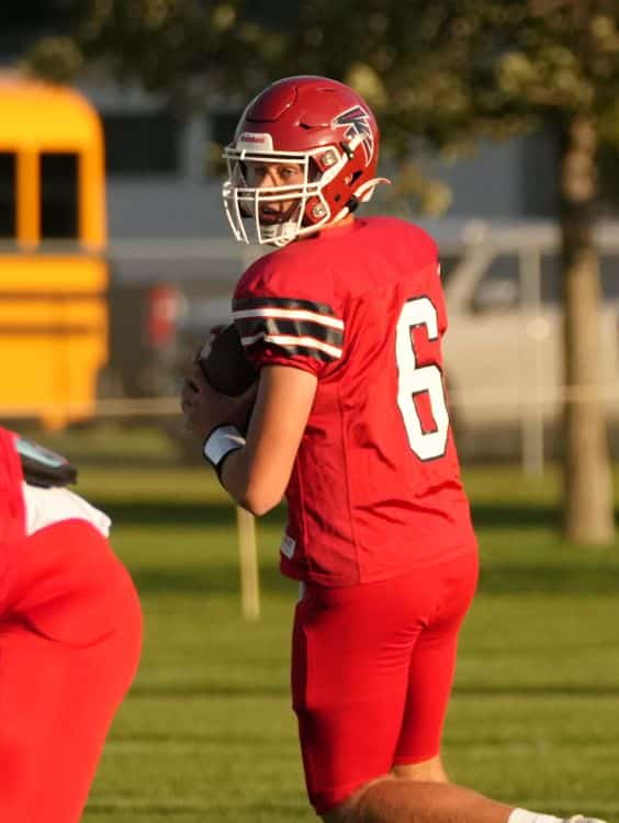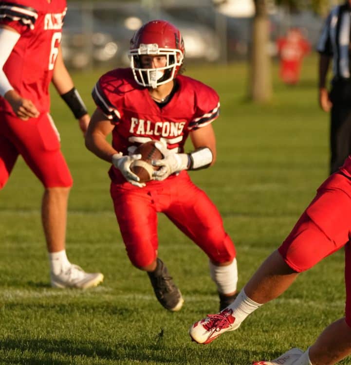 Fertile-Beltrami started the game with ball after Stephen-Argyle won the coin toss and diferred to the second half. Fertile-Beltrami had a fourth down and two and decided to go for it at their own 48 yard line. Stephen-Argyle’s defense made the stop and started their first offensive series at the Falcon 48 yeard line. Stephen-Argyle’s Raydon Woinarowicz carried the ball for four yards before a penalty. Kellen Johnson carried the ball six yards for a first down and followed up with a 24-yard run for another first down. Anders Thompson carried the ball for two yards before Johnson carried the ball three times for nine yards and scored on the third carry from two yards out and the Storm scored the first touchdown of the game with 7:18 remaining in the quarter. Johnson completed the two point conversion on the ground for an 8-0 lead.