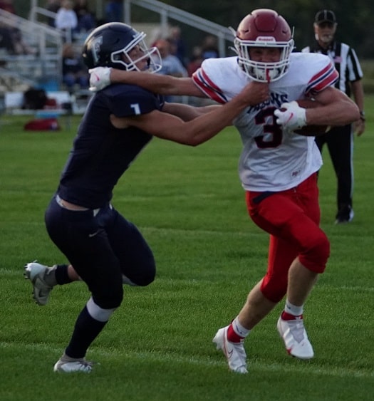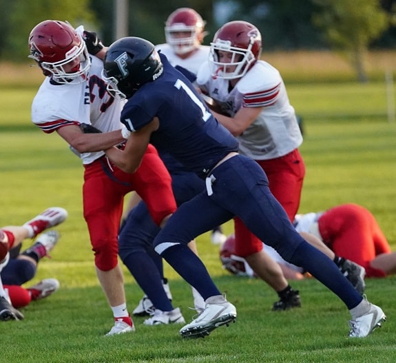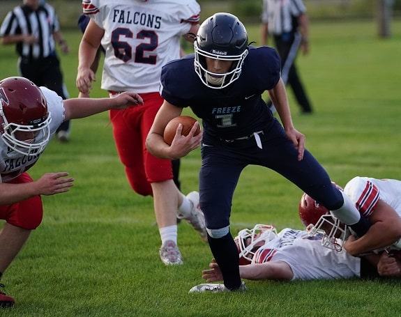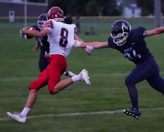 Late in the game, the Freeze put a nice drive together while taking advantage of Fertile-Beltrami inserting some backups into the game, and capped an eight-play drive with a Gage Hockstedler one-yard run and after a two-point conversion, the Freeze trailed 42-16. “I was happy defensively with how we played and towards the end, we had a lot of young guys in and we need those guys to go in,” said Coach Nelson. “I thought Wesley Ramberg came in and played a great game and gave some of the other guys a break. He had a huge fourth-down sack. He is a wrestler and tackles well.”