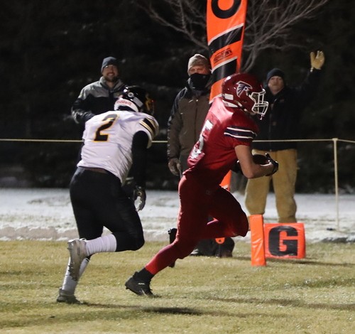 Both teams would have a turnover-on-downs late in the third and into the early part of the fourth quarter. With both teams keeping the ball on the ground, time went by quickly, but the Falcon defense came up with a fourth-down stop, which set their offense up with a first down at the Clearbrook-Gonvick 30. Five plays later, sophomore Kobe Bennefeld ran it in from two yards out to cap off a solid night for the Falcons. Brody Raaen’s successful run on the two-point try made it a 45-6 final score.