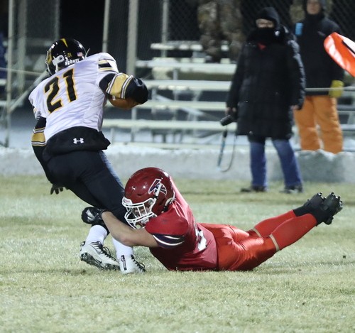 Clearbrook-Gonvick had the ball start the second quarter, but their third possession of the game ended with a 28-yard punt, setting the Falcons up at the Bears’ 45-yard line. Fertile-Beltrami’s offense again went to work, moving 45 yards in seven plays. Junior quarterback Rylin Petry was able to score from two yards out on a QB sneak. The ensuing two-point try failed, but Fertile-Beltrami had a 30-0 lead with 7:01 left in the second quarter. Starting their next drive at their own 35, Clearbrook-Gonvick finally found some momentum on offense and started driving into Falcon territory. The Bears had a first-and-goal from the two, but junior quarterback Kyle Gerlofs was sacked for a loss of eight. After two straight incompletions, Clearbrook-Gonvick was faced with a 4th-and-goal from the 10 with 22 seconds left until halftime. Gerlofs tried to throw to sophomore Logan Westrum over the middle, but the pass was picked off by junior Tyler Stuhaug, ending a promising 12-play, 55-yard drive for the Bears.