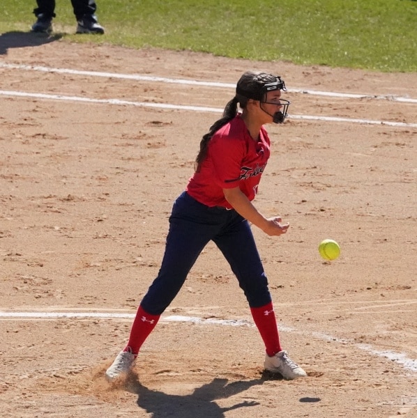 Brooklyn Strem got the start in the circle once again for the Falcons and put up a 0 on the scoreboard for the Cougars in the top of the second inning allowing a 2-out single but nothing more. Strem would then leadoff in the bottom of the second inning with a single, and after a groundout would advance her to second base, two wild pitches would allow her to move up to third base, and then advance home to tie the game at 1-1 after two innings of play.