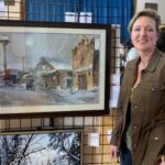 Merit $100 Debbie Aune of Gatzke in watercolor painting “Busy Streets on a Cold Day: Badger MN”