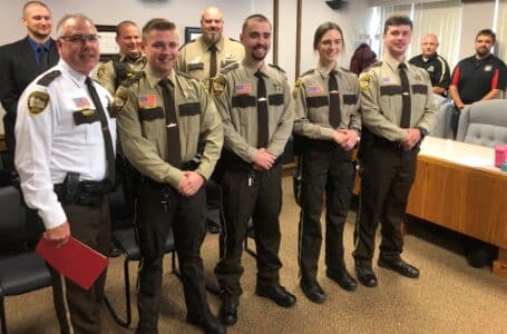 Polk County Sheriff James Tadman then approached the board to perform an Oath of Office for four new deputies to the Sheriff’s Office. These deputies included Brittney Neil, Jarrin Gunderson, Dylan Van Der Stad, and Jordin Gunderson. Pictures of the deputies with Polk County Sheriff James Tadman can be seen below.