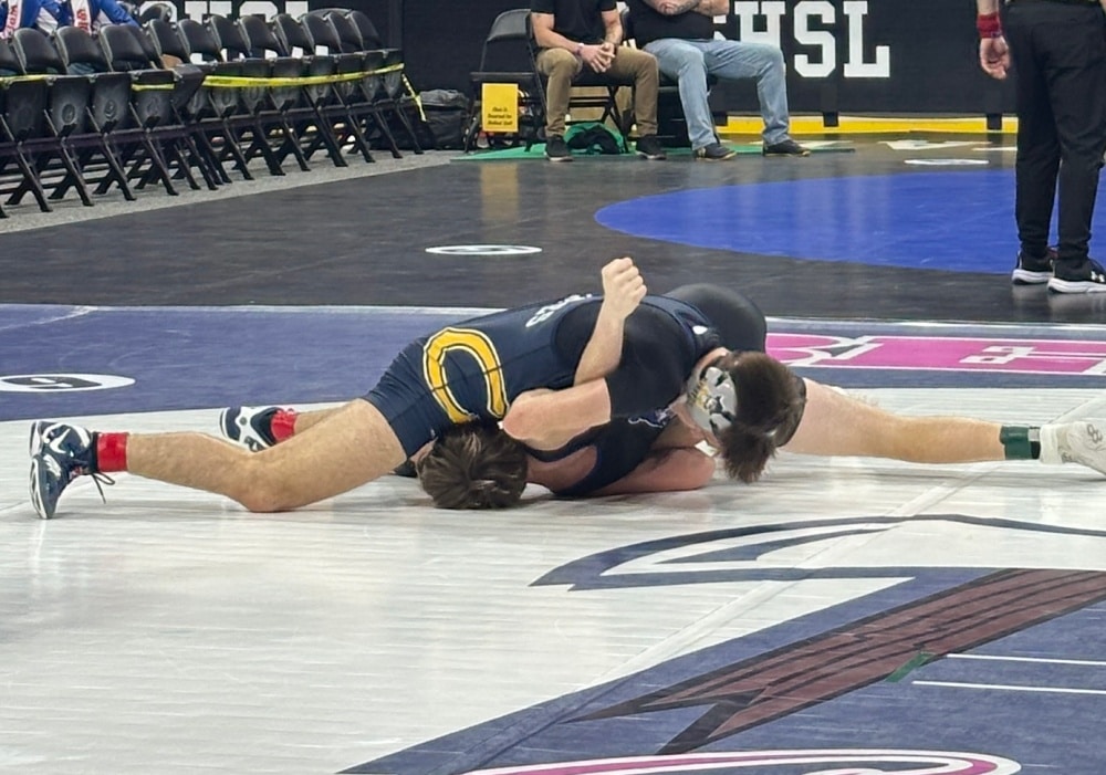 In the first round, Gavyn took on Cayden Maly, a sophomore from Westerfield, who was 21-21 on the year. Hlucny dominated from the start as they scored a takedown 22 seconds into the match for a 3-0 lead. He added four near fall points with 47 seconds left in the period, and added four more near fall points at the end of the period for an 11-0 lead. Gavyn started the second period with an escape five seconds into the period. Seven seconds later, he got a takedown to win the match by a tech fall 15-0 at 2:12.