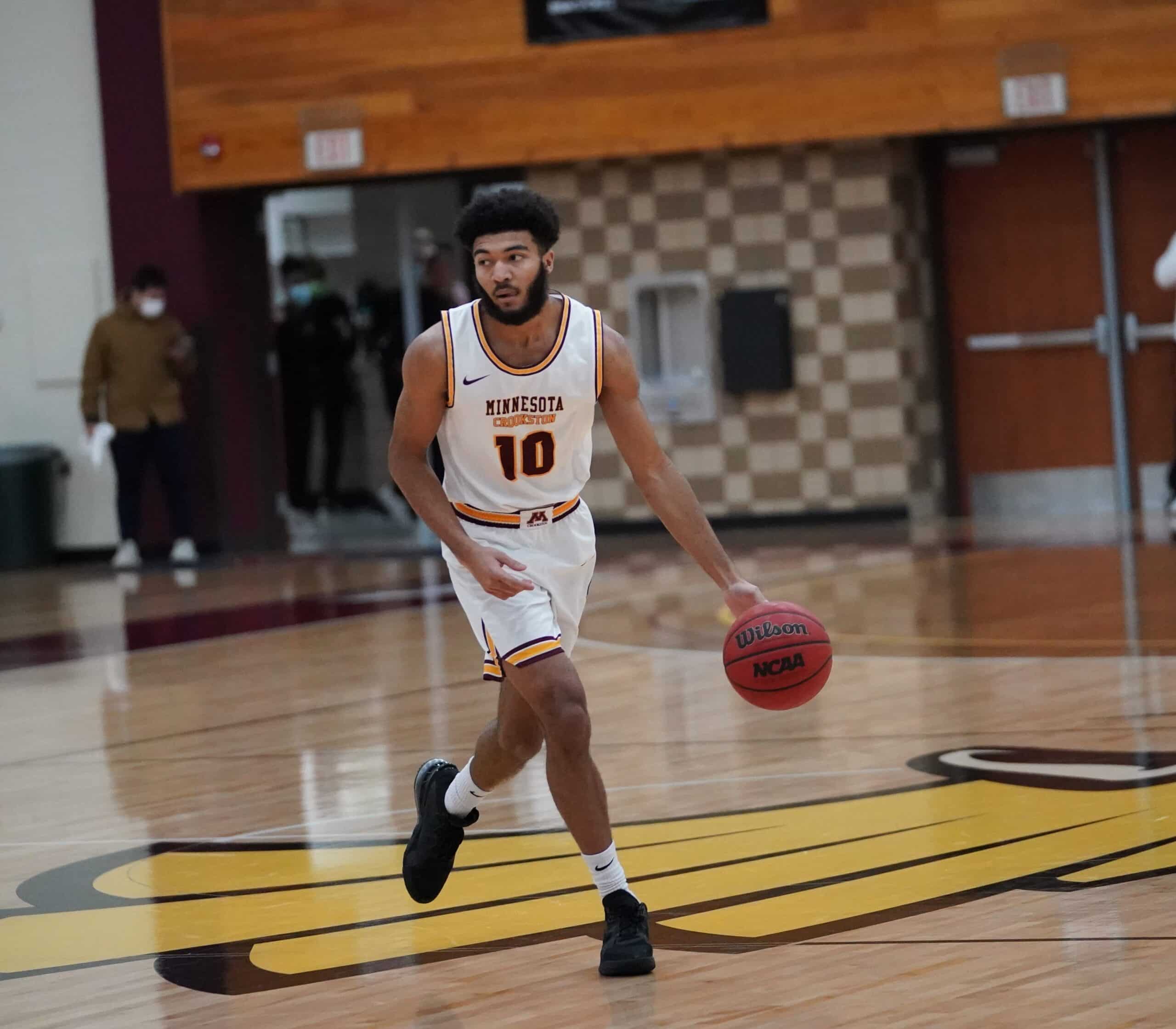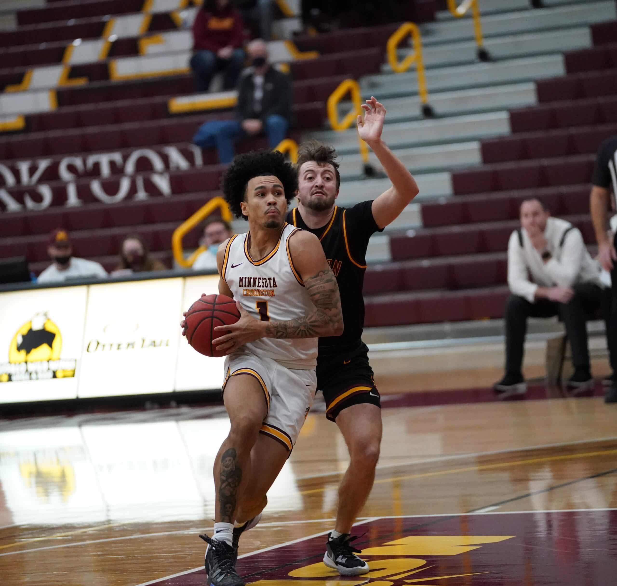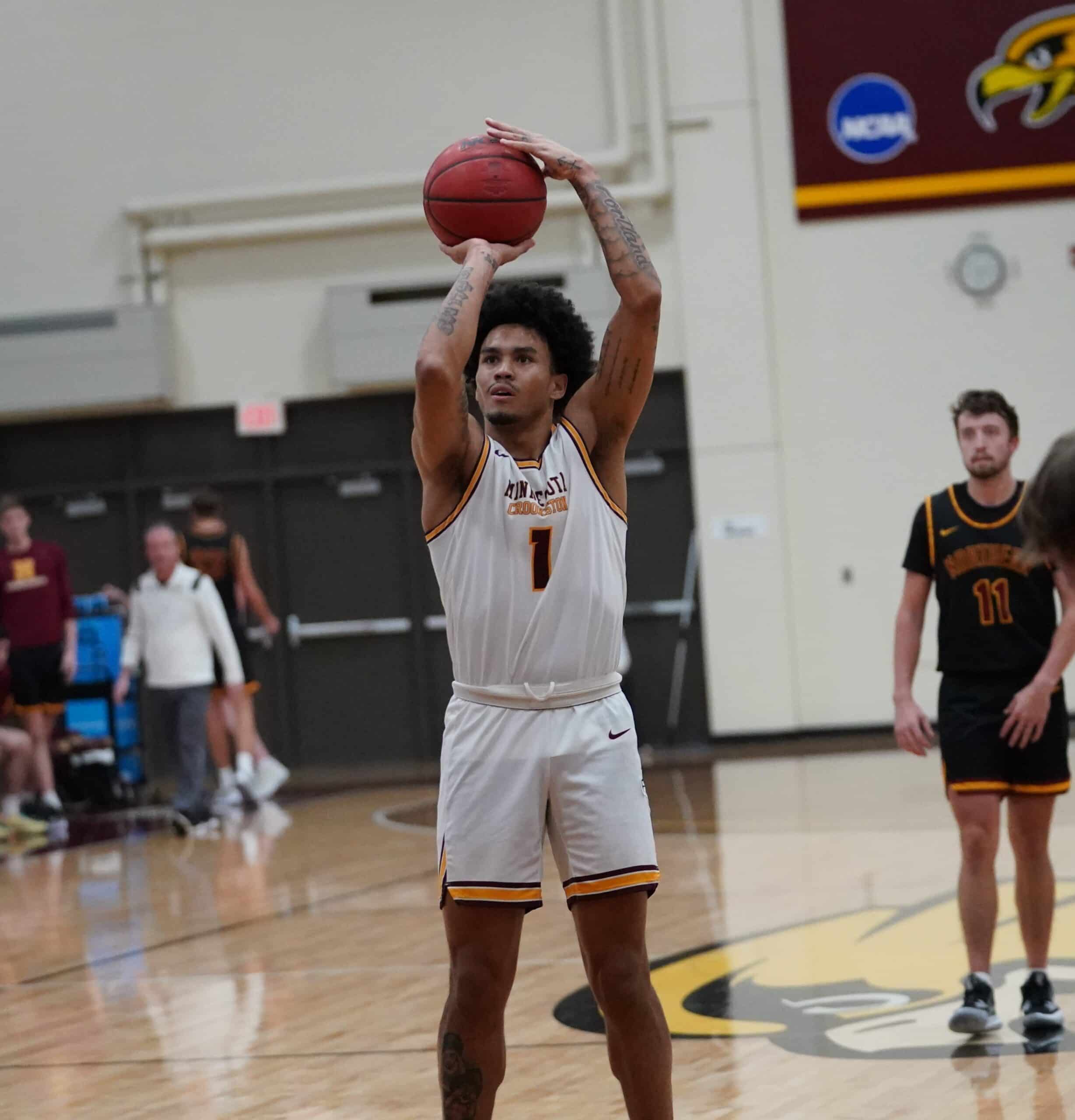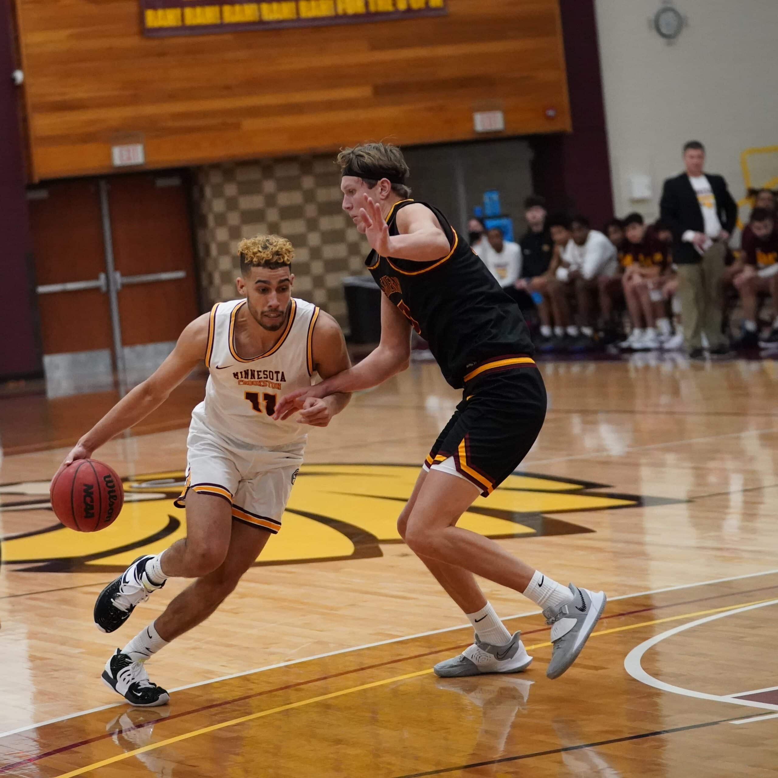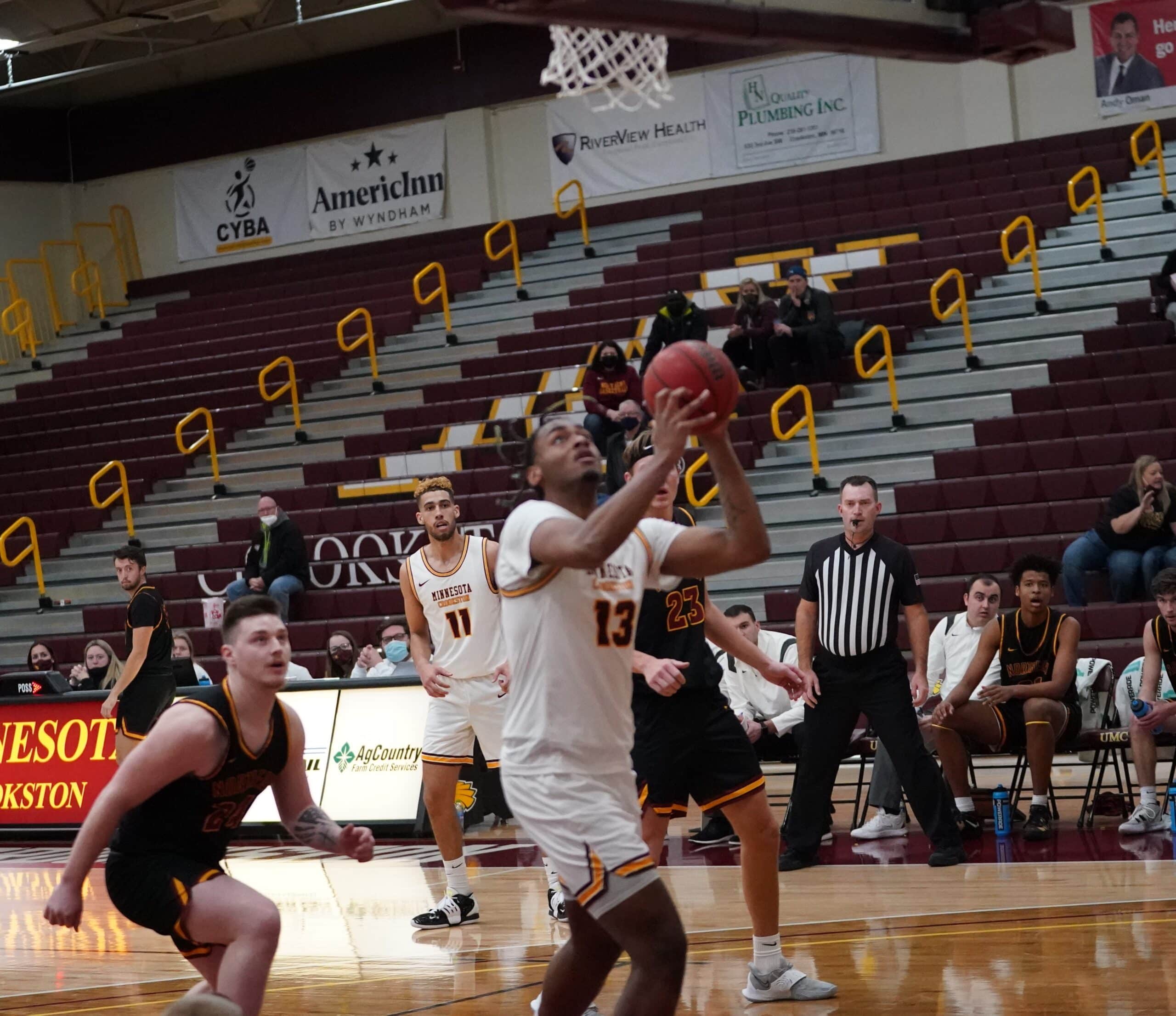 The University of Minnesota Crookston (UMC) Golden Eagles Men’s Basketball team came into Friday night looking to bounce back after losses to St. Cloud State and the University of Minnesota Duluth last week. They welcomed the Northern State University Wolves into Lysaker Gymnasium with the hopes of doing just that. It was a tightly contested matchup through the first twenty minutes, but Northern State used a strong start to the second half and shot their way to a 76-65 NSIC conference victory.