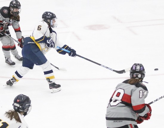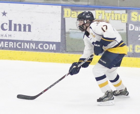 Crookston started the third period with another penalty but was able to skate that off for the first three minutes of the period. Grand Forks would score first in the period on a nice rush by sophomore center, Averi Greenwood who came into the Crookston zone, worked around a Pirate defenseman neatly and was in alone on Magsam and able to beat her to give the KnightRiders a 4-1 lead. “Yeah, that might have been the dagger,” said Moe. “Down by two you can cut it in half and maybe tie it, but when you’re down three goals and 11 minutes to go, that is tough.” Crookston would get their second goal just under two minutes to go when Pirate senior captain defenseman, Mackenzie Epema let a wrist shot go from just inside the blue line to the left of the goal that got past the netminder and Epema’s first goal of the season and it was 4-2. “That was what we’re talking about, “said Moe, “Kenzie put it on net and good things usually happen when you do that.” With about 38 seconds to go in the game, Crookston pulled their goalie, and the KnightRiders leading scorer, Shaley Richards, was able to put in her 21st goal of the season on the empty net to make it a 5-2 win for Grand Forks. “You know the girl’s never quit working in the game,” said Moe. “I liked that effort, and although we outshot them 31-21, we have to get more quality shots, passes, and people in front to distract these goalies. We’ve played some very good goalies during this stretch.”