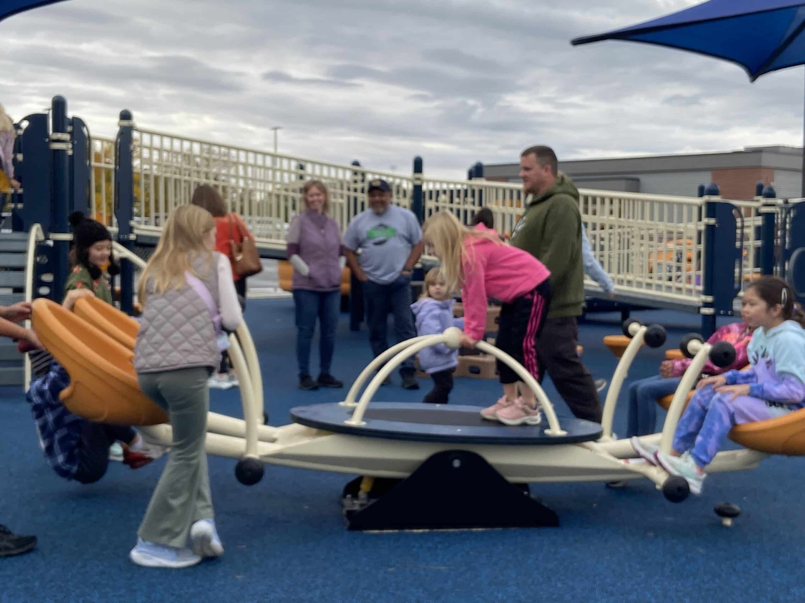The excitement was evident by the squeals of children running around and the smiles on the faces of children and parents alike. Hats off to Principal Chris Trostad and the Inclusive Playground committee for their commitment to this project. You can still make a donation to the project by dropping off a check at either Highland School or KROX. Make checks payable to Highland School.