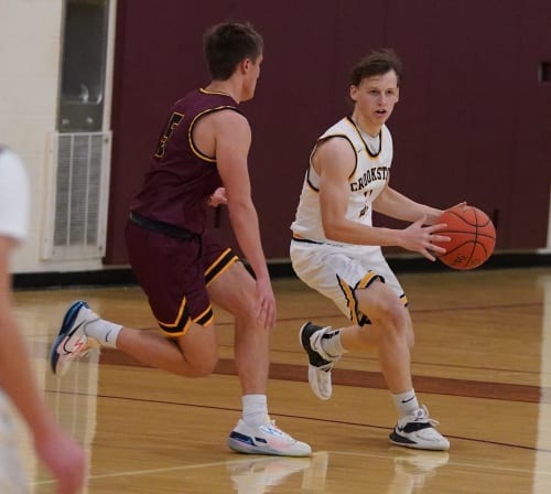 Hawley came out and put their stamp on the game early and jumped out to an 11-0 lead behind seven points from Sam Senske (son of Steele and Sheri (Larson) Senske and grandson of Gary Senske). “They are long and lean and they used the 1-3-1 and we didn’t handle it,” said Coach. Greg Garmen. “We didn’t handle the pressure and they were hitting all their shots.” Crookston finally got on the board when Jack Garmen made a three-pointer five minutes into the game. Hawley responded with a 9-0 run before Garmen made another three-pointer and the Pirates trailed 20-6. Hawley went on another run, this time a 13-0 run with back-to-back three-pointers from Bailey Thompson, and was followed by a three-point play from Hayden Grani, and a three-pointer from Bryant Carlisle. The run was capped by a free throw from Hayden Grani and the Nuggets led 33-6 halfway through the half. Crookston trailed 47-16 after a Garmen free throw and an Isaac Thomforde basket with four minutes left, but the Pirates didn’t score the rest of the half and Hawley took a 58-16 lead into halftime. “It was a tough half,” said Coach Garmen. “We told them we wanted them to battle and play hard in the second half.”