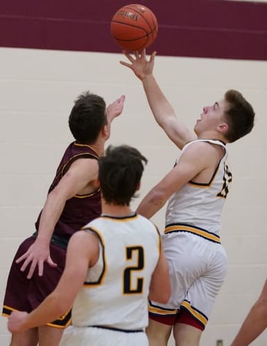 The Hawley Nuggets used their size, length, and a 1-3-1 full-court press and turned defense into offense while scoring 58 first-half points on their way to an 85-41 victory over the Crookston Pirate Boys Basketball team in a Section 8AA game played in Hawley. “Hawley is good and they have all the pieces in place,” said Pirate Coach Greg Garmen. “They were a tough matchup for us.”
