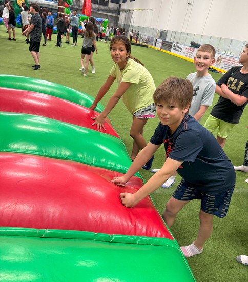 Crookston’s Highland Elementary Students experience a fun blowout day as their school year finalizes. Each grade spent one hour at the Crookston Sports Center, where the school rented some inflatable obstacle courses and games.