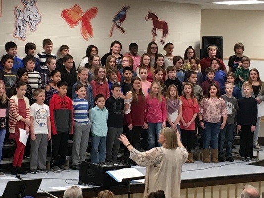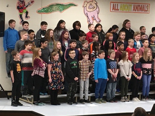 The Highland School fifth graders held a choral presentation called “All About Animals” on Thursday afternoon in the Highland School Auditorium. The sang Swinging on a Star, Sailing Down the Nile with a Crocodile, Little Fish Big Name, All the Pretty Little Horses, and Rockin’ Robin.