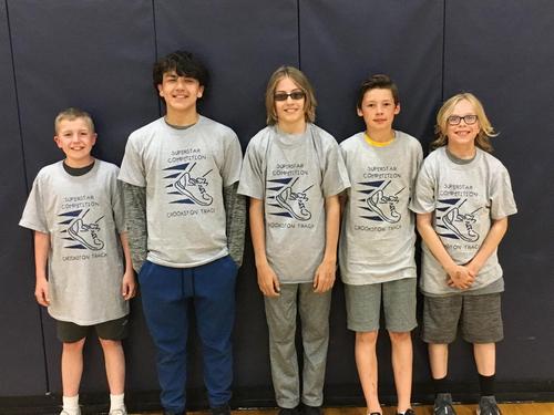Highland Elementary School held the annual track and field meet this week and the top five point-getters are honored with t-shirts