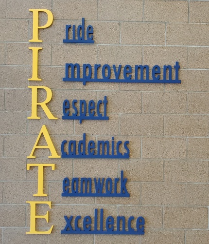 The Crookston School District has created a mantra of motivational words to inspire the students to do their best every day and has printed it out as an anagram with a specific word for each letter in the word Pirate. The High School tasked Community Projects Teacher Travis Oliver to turn the anagram from a printed page that they posted all over the school into a more permanent addition to the school. “That’s something of a mantra that we want to peruse as a school, within not only the High School but also Highland and Washington School together using the already established Pirate word, which is our mascot towards that goal,” said Oliver. “There have been sheets of paper around the school, posted on doors, on classroom doors, and inside classrooms. This is another extension of that. In a much larger and more visible area on what was previously an empty wall in our commons area.”