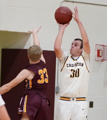 Bagley started the game by scoring the first four points before Crookston responded with a seven-point run, with Ryan Abeld scoring four points and Haden Michaelson making a three-pointer for a 7-4 lead a little over three minutes into the game. “It wasn’t the start we wanted getting down by four right away,” said Pirate Coach Greg Garmen. “But we settled down a little bit and started playing a little better.” Bagley tied it up at 7 with a basket and free throw, and a few minutes later, the Flyers led 12-10.  Crookston started to pick up the defense and turned it into instant offense as Jack Garmen scored on a layup and Jacob Hesby followed with a three-pointer before Haden Michaelson ended a 7-0 run with a basket for a 17-12 lead.  After a Bagley three-pointer from sophomore guard Alex Jobe, Crookston responded with a basket from Tanner Giese and another Hesby three-pointer for a 22-15 lead with six minutes remaining in the half.  Bagley responded with five straight points to get within a 22-20 score only to have Haden Michaelson and Evan Christensen answer with a basket apiece for a 26-20 lead.  Once again, Bagley’s Jobe answered with five straight points to get within a point before Crookston’s Giese made two free throws, and Haden Michaelson scored in the paint to give the Pirates a 30-25, a lead they took into halftime. “We missed a lot of bunnies (easy shots), probably five or six at least,” said Coach Garmen. “We should have been up by a lot more at halftime, but we will take the lead.  It is the first time this year we have led at halftime so we will take it.”