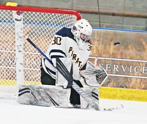 The first period was the definition of a hard-fought physical hockey game. There were only eight total shots in the first six minutes of the game before Crookston would have the only Power Play of the period. The Pirates would get a couple of shots on goal but Sawyer Torkelson was up to the task and the game remained 0-0 as the Panthers got back to full strength. The Panthers would control the remainder of the period, outshooting the Pirates 12-6 in the first seventeen minutes, but neither team would score and the game would remain tied 0-0 heading into the second period. “I thought Jaren Bailey had an excellent game in the net right from the start,” said Pirates Head Coach Josh Hardy. “He was locked in from the get-go and that was one of the better performances I’ve seen him have.”