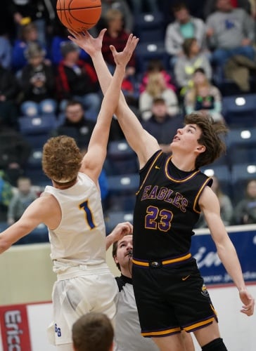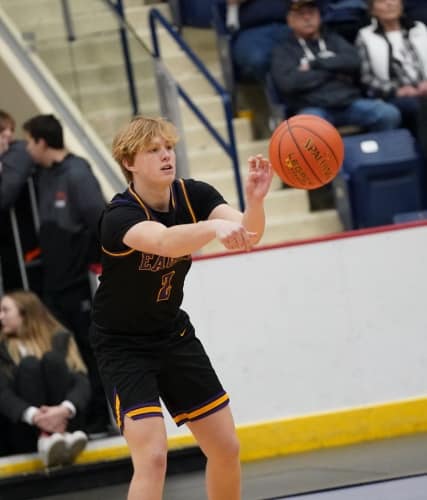 The Sacred Heart Eagles Boy’s Basketball team defeated the Goodridge-Grygla Chargers on Saturday afternoon 84-60 to advance to the Section 8A semifinals. Kobe Tomkinson put together a career day scoring 39 points for Sacred Heart, and the Eagles led comfortably for most of the game on their way to victory.