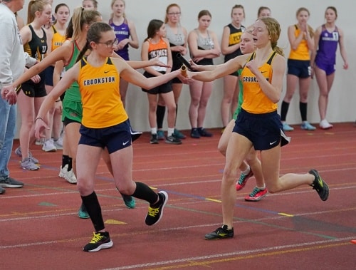 The Crookston Pirate Girls Track team finished third place out of 10 teams and the Pirate Boys Track team finished 10th out of 10 teams at the Heart of Lakes indoor track meet at Concordia College in Moorhead on Tuesday evening. Â Perham won the girl’s division, while East Grand Forks won the boy’s division. Both Crookston teams had skeleton teams in the first meet of the year.Â