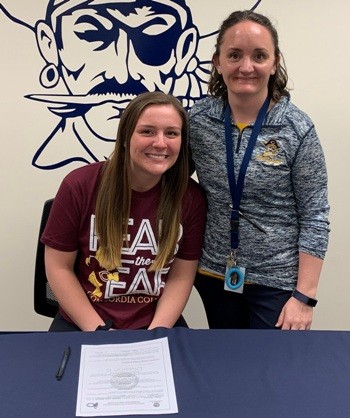 Crookston High School senior, Kylie Solheim, signed an NCAA letter of intent to attend and play volleyball at Concordia College in Moorhead next year at a signing ceremony held at the Crookston High School Thursday afternoon. Kylie was an All-Conference player this year and All-Conference honorable mention as a junior. The senior setter was a key player on the Pirate Volleyball team that went 12-14 on the year and won their first playoff match in several years with a win at Thief River Falls in the first round of the Section 8AA Volleyball tournament. Kylie was a leader on and off the floor. “We are all very proud of Kylie and her hard work,” said Pirate Volleyball Coach Ashley Stopa. “We are excited to see her continue her volleyball career at Concordia.”