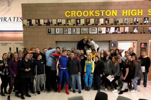 The Crookston Leo Club along with their advisor Linda Morgan and School Resource Officer Don Rasicot spent Halloween trick or treating for canned goods for the Care & Share. Thanks to the generous support of the Crookston Community they collected approximately 1,800 pounds of food.