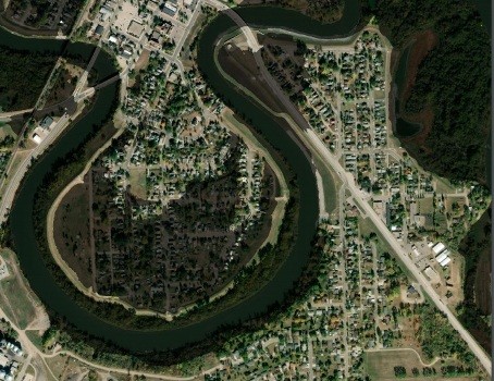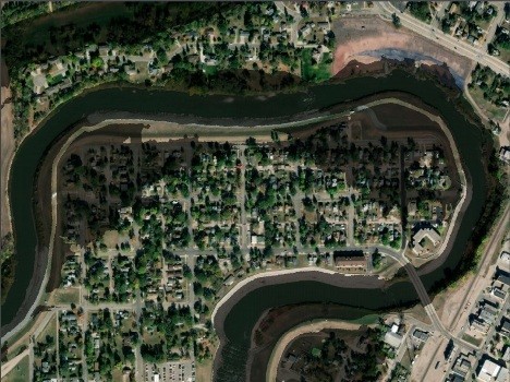In 1997 the ice jammed on the river, causing the water level to rapidly rise. During the work to install Crookston’s levee system after 1997, two cutoffs were added down the river that Carlson says have a pretty significant effect on the river level during high water events. “There are two channel cutoffs downstream from Crookston,” said Carlson. “One is just downstream from the Highway 75 bypass and then another one about another half a mile west of that. The effect on the level of the water those cutoffs create is about the same on a 10-year and 100-year flood. The effect on the water level at the Highway 75 bypass is about two feet lower and diminishes as you move upstream. At the Robert St Bridge, the effect is about one and a half feet and about a half foot back by Riverside dike. Once you get upstream much more than that the water level is not affected by those downstream cutoffs, but it does make a big difference going through town.”