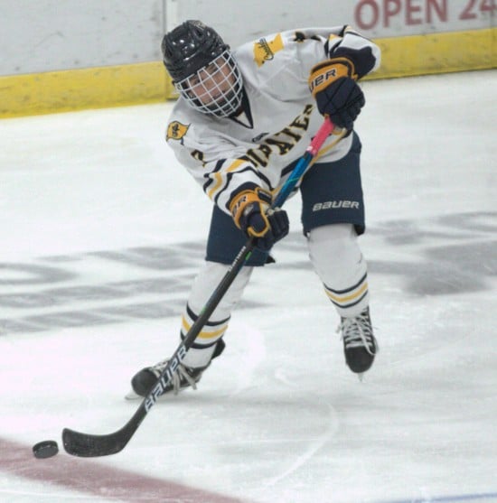 A cardinal rule in hockey is don’t let your opponent score in the last minute or the first minute of a period! Duluth Marshall did it to end the first period, and there was only one goal scored in the second period; it came just 18 seconds into it, and this time, it was Lindaman winning a face-off, getting the puck to Nina Thorson on the back door to make it 3-1. “I think all those mistakes, fanning on shots, missing shots, and things of those nature, “said Meyer, “It’s just the little things; if our girls can connect on these things, we’ll be much better. We want to focus on the positives and continue playing pirate hockey.”  Crookston didn’t capitalize on a Marshall penalty and the Pirates would skate the last 2:24 period shorthanded. Although Marshall didn’t score, it took away the Pirate offense. The Pirates were assessed a five-minute major for cross-checking in front of the Crookston net with 17 seconds to go in the period. A major penalty means the team on the power play can score as many times as possible in those five minutes. The major penalty ran into the third period with Duluth Marshall with a 3-1 lead. “We need to capitalize on our opportunities,” said Meyer.