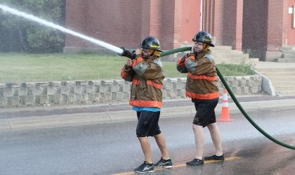 The Crookston Reds, a team made up of Cody Magsam and Garett Bengston, won the Crookston Fire Department’s annual Water Wars competition on Ash Street in downtown Crookston.  Magsam and Bengston beat Travis Oliver and Eric Griffin in the championship to take home $150 in Crookston Chamber Bucks.  Oliver and Griffin won $100 in Chamber Bucks for their runner-up finish.
