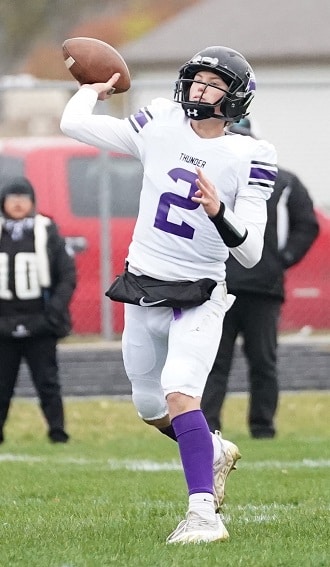 Mahnomen-Waubun controlled the time of possession in the opening half, and outside of the first possession of the half, and a late fumble, dominated. The Thunderbirds received the opening kickoff and started on their own 18-yard line. The biggest play early in the game came on a fourth down and one for the Thunderbirds. Tanner Pazdernik would keep a handoff and be stuffed by the Thunder defense short of the first down for a turnover on downs. Polk County West would take over on the Mahnomen-Waubun 44-yard line. The Thunder couldn’t capitalize on the good field position, and after a short punt, Mahnomen-Waubun would take over on their own 25-yard line for their second possession of the game. Mahnomen-Waubun continued to run the football, and Will Starkey picked up three first downs rushing, pushing the ball into Polk County West territory. Later in the drive, the Thunderbirds struck first on a 5-yard touchdown run by Will Starkey. It finished an impressive 11 play 75-yard drive that took five minutes and twenty-seven seconds. Every play was a run for the Thunderbirds. The two-point conversion would fail to give Mahnomen-Waubun a 6-0 lead with 1:17 remaining in the opening quarter of play. Polk County West got their offense rolling a bit, as Isaac Zavoral found Cullen Rohrich deep downfield for a 44-yard pass inside the Thunderbirds 15-yard line. “That was a nice pass,” said Thunder Coach Darrin Byklum. “He found Cullen down the sideline and that was big because we weren’t able to run the ball.” It would set up a first down and 10 from the Mahnomen-Waubun 12-yard line to begin the second quarter.