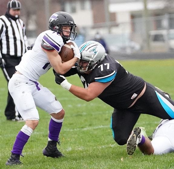 The Thunderbirds would go for it on fourth down and be stopped short giving the football back to Polk County West on their own 30-yard line. The Thunder needed to score and preferably do it quickly to apply some pressure to Mahnomen-Waubun. They would be forced into a fourth down and seventeen and would take a chance and go for it. It would pay off in a big way as Isaac Zavoral would launch a pass deep that Cullen Rohrich would run under for a 52-yard pass completion down to the Mahnomen-Waubun eight-yard line. A few plays later, Polk County West would face a fourth down and goal from the three-yard line. They would go for it once again, but this time the Thunderbirds defense would get a hand on a pass and force the incompletion. With the huge stop, Mahnomen-Waubun would take over with 7:22 remaining on their own three-yard line, still leading 12-3. Polk County West wasn’t quite ready to call it quits yet however, as they forced a quick three and out. Not only that, but on the Mahnomen-Waubun punt, Zach Fenno would make the biggest defense play of the game for the Thunder, as he would block it, giving Polk County West an instant first and goal on the Mahnomen-Waubun six-yard line. “That was a big play to get that block,” said Coach Byklum. Polk County West couldn’t score with the excellent field position however, as two plays later they would have a costly turnover on a fumble, and the Thunderbirds would take over with just 4:04 remaining in the football game with a chance to run the remaining time off the clock. Mahnomen-Waubun would do just that, converting a few first downs and running the remaining time off the clock to secure a 12-3 victory and spot in the Section 8A Championship. Polk County West had their opportunities but were stopped inside the Mahnomen-Waubun 10-yard line twice in the second half and on one trip to the red zone in the first half could only come away with a field goal. “We had two great chances in the fourth quarter with the ball inside the 10-yard line, but we didn’t score either time,” said Coach Byklum. “As much as we struggled to run the ball, our defense kept us in the game and gave us a chance. We score on those two times we were inside the 10 in the fourth quarter and we win and see another day, but that isn’t how it worked. We had a great season and say goodbye to some great seniors and that is the hard part of losing this game.”