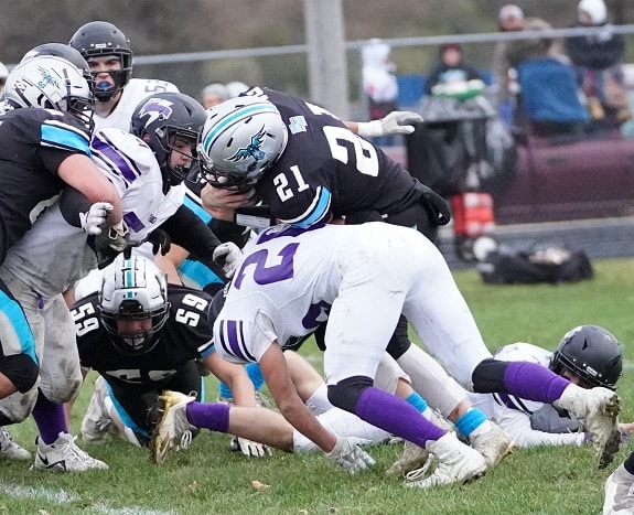 The Polk County West Thunder (coop of Climax-Fisher and Sacred Heart) football team traveled to Mahnomen on Saturday afternoon to battle the Mahnomen-Waubun Thunderbirds in a section 8A semi-final. Mahnomen-Waubun used a strong rushing attack and two big goal-line stops defensively to prevail 12-3 and earn a spot in the Section 8A Championship next Thursday night.