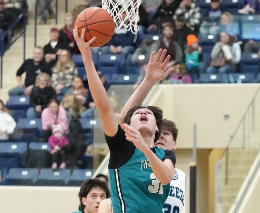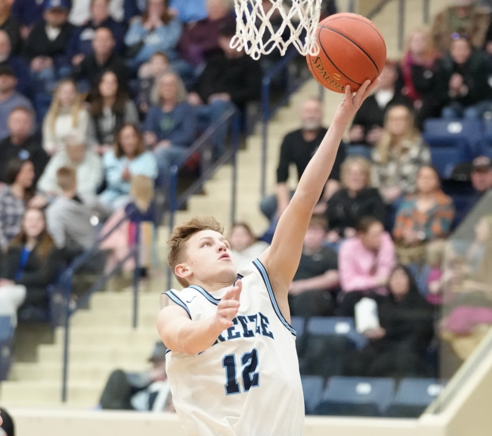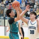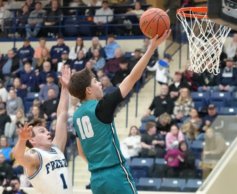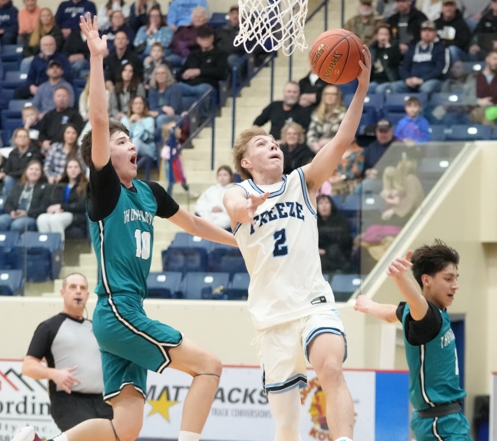 The Thunderbirds looked to make some adjustments to start the second half, and that started with a quick three-pointer from Anthony Thompson, and that seemed to open things up on both sides. The style went to a complete run-and-gun for the next few minutes, with both teams getting open three-pointers and layups. The Thunderbirds cut the lead down to 44-26, but then Sawyer Torgerson drilled a deep one, followed by a layup on the next possession to put the Freeze up 49-26. Mahnomen-Waubun got the next four points, but then the Freeze started feeding Avynn Ryba, who began to dominate on the glass on defense, as well as the low block on offense. He took the Freeze on a 6-0 run by himself to put the Freeze up 25, forcing a Thunderbird timeout. The Thunderbirds then scored the next eight points of the game before the Freeze had an answer, with Brody Lhotka scoring 5 of them. With 7 minutes to go, fouls were adding up, but that didn’t stop the Freeze from continuing to make plays. Alex Bray hit a shot to put him at 26, and the Freeze back up by 21, and in the final two minutes, the Thunderbirds tried to make a run, and cut the lead down to 13 at 70-57, but they just didn’t have enough, as the Freeze held on to win by a score of 72-59.