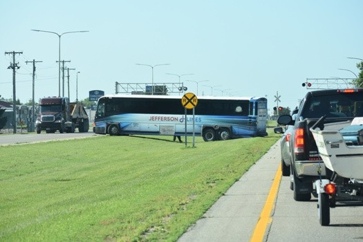 The railroad crossing arms on Highway 2 are malfunctioning in the down position causing delays on the north end of the Crookston. The Crookston Police Department said they first received a call about the malfunction around 9:00 a.m. and requests have been placed to the railroad to get them repaired. Many drivers are attempting to turn around, some through the median. A Jefferson Lines bus was one of the vehicles the tried to turn around in the median and was not able to clear the median as the back end got hung up on the approach.
