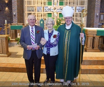 “There is a beauty about the mystery of two becoming one. Marriage starts with an irrevocable consent whereby the man and the woman freely give themselves to each other and accept each other,” Bishop Michael J. Hoeppner said during his homily.