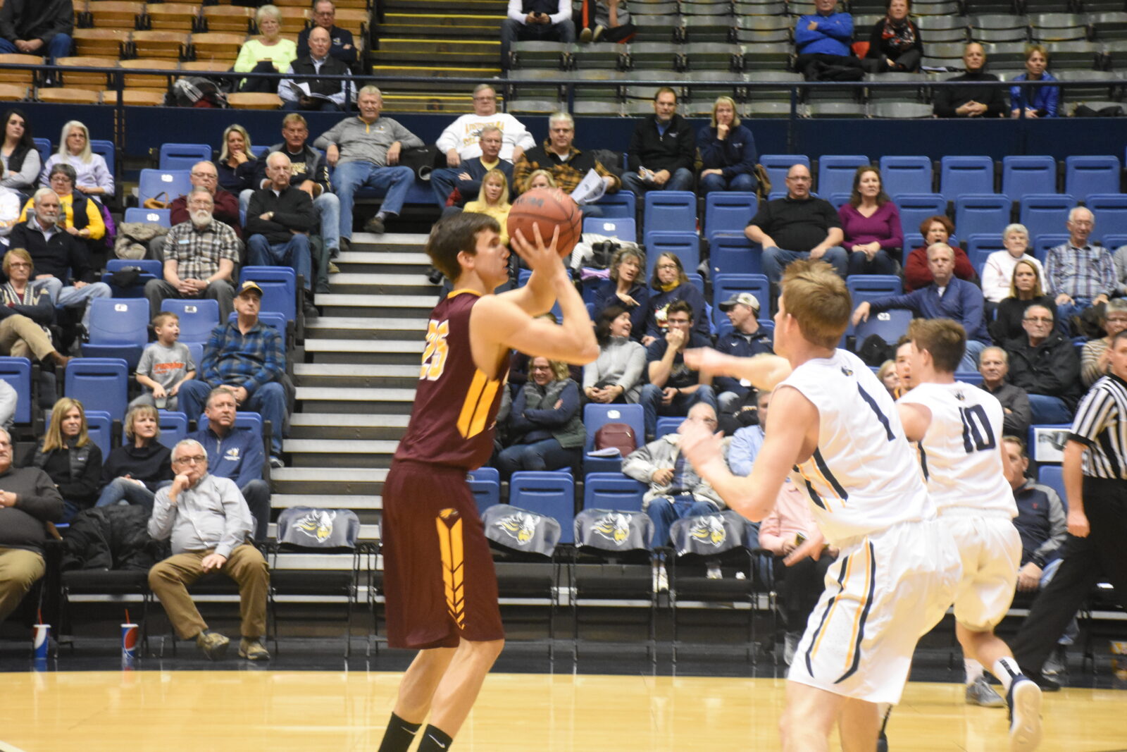 The Golden Eagles opened a thirteen-point lead opening the second half with a 13-2 run to go ahead 50-37 with 16:43 to play. Augustana responded with six-straight points to pull within 50-43 before a 12-2 Vikings’ run regained a 55-54 lead with 12:19 remaining. An 8-0 run after a Chase Johnson lay-up pushed Augustana’s lead to 63-56. The Golden Eagles pulled within 71-70 with 3:57 to play after four-straight Harrison Cleary points, but Augustana scored five-straight points and finished the game on an 11-0 run to close out the 91-76 victory.