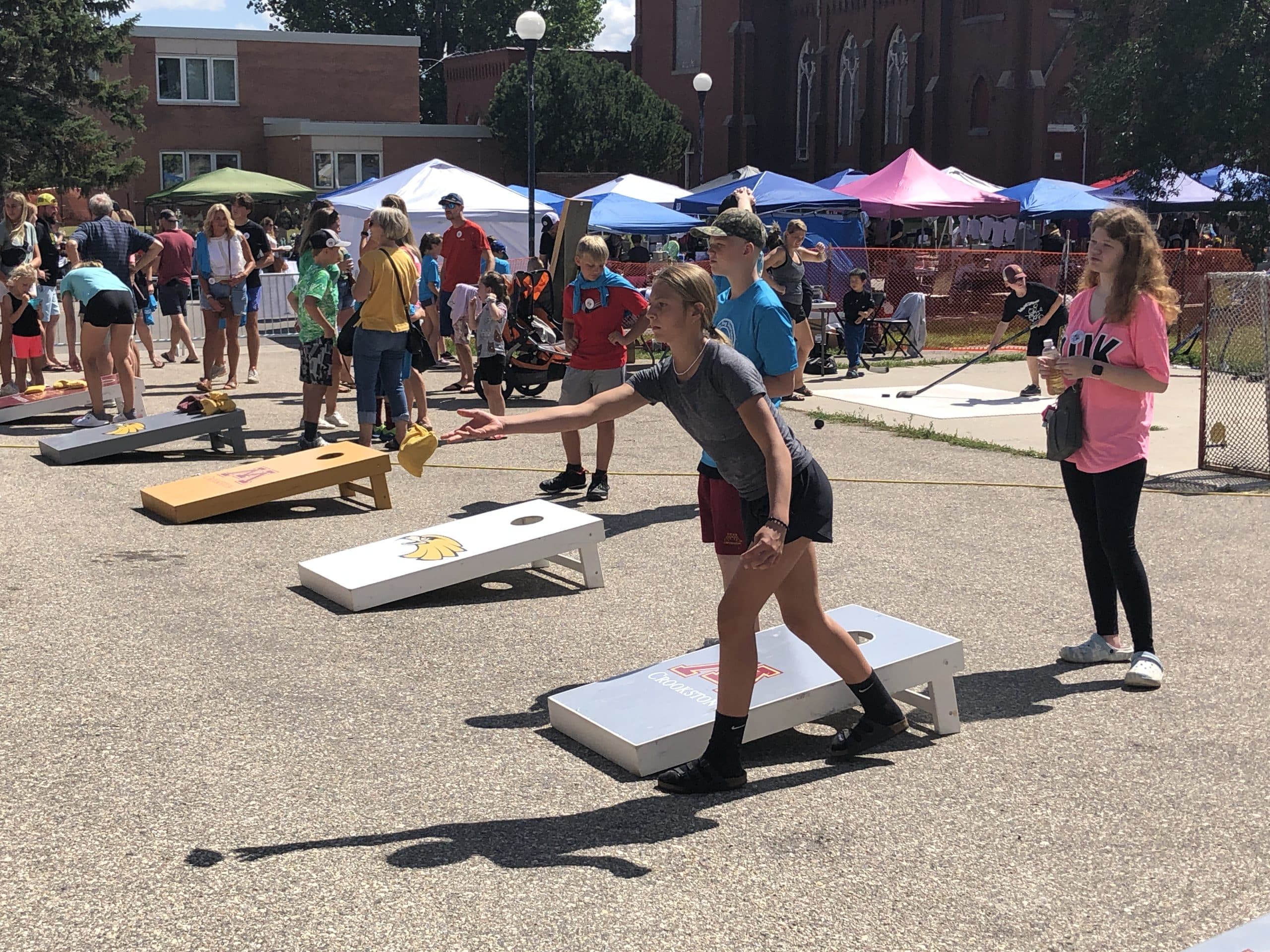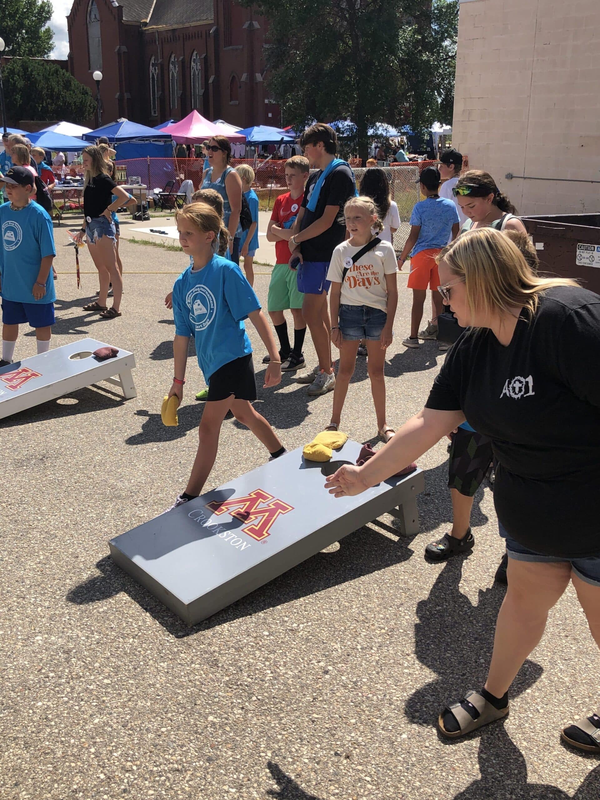 24 teams and nearly 50 kids participated in the Kids Bean Bag Tourney sponsored by Altru on Saturday in the Downtown Square in Crookston.